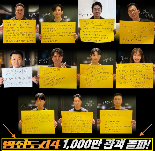 배급사 에이비오엔터테인먼트에 따르면 '범죄도시 4'는 이날 오전 누적 관객 수 1천만명을 돌파했다.