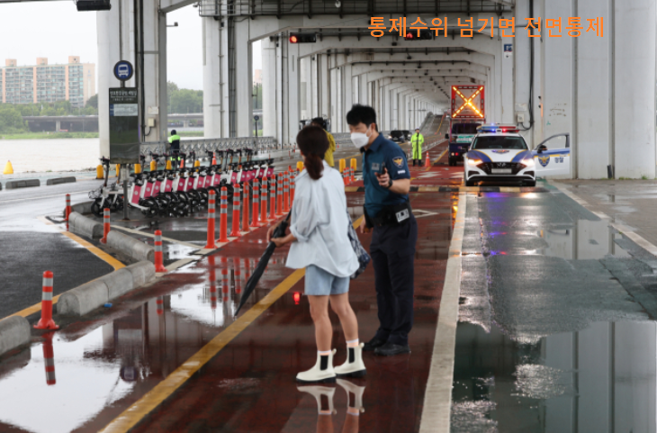 이날오전 7시경에는 서울한강잠수교 수위가 5.5m에 다다를면서 선제조치로 보행자 통행을 중단 시켰고