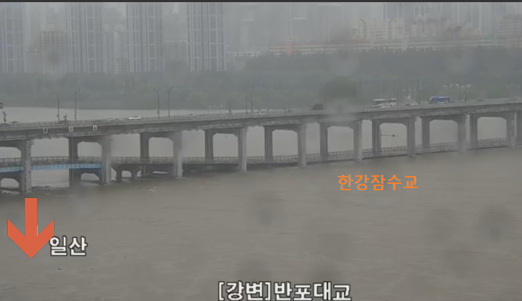 현상황으로 볼적에 한강 잠수교는 조만간 물에 잠갈것입니다