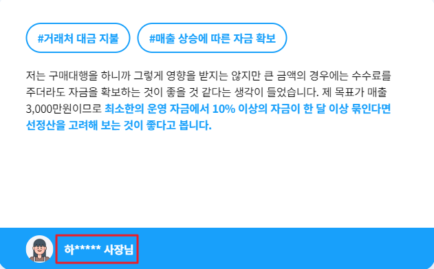 자금 압박의 스트레스를 받지 않고 더욱 사업에 집중할수 있게