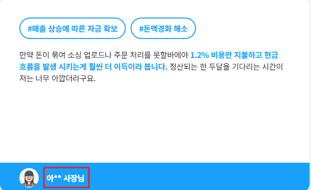 쇼핑몰 판매대금을 선지급 해주는 유용한 서비스이다.