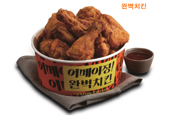국내산 8호 닭을 사용한 어메이징 완벽치킨은 피코크 비밀연구소의 비법 파우더(쌀가루와 향신료 15종)를 적용해 바삭한 식감과 진한 풍미를 살렸습니다.