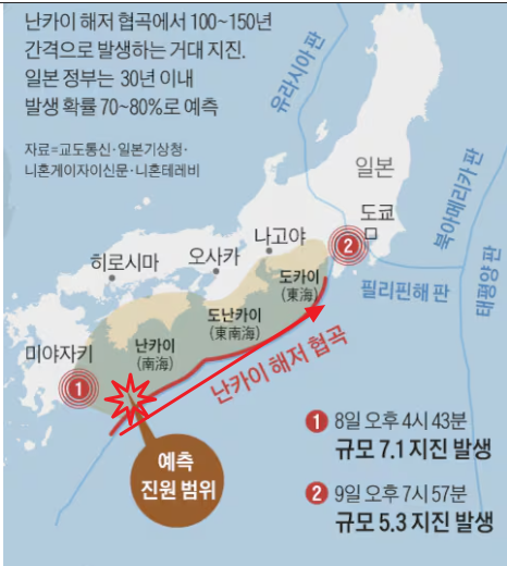 난카이 해곡은 약 100~150년 주기로 대규모 지진이 발생하는 지역으로,