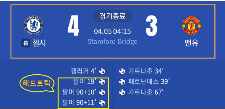 첼시의 승리로 끝났으며 팔머는 3골로 헤드트릭을 기록했습니다